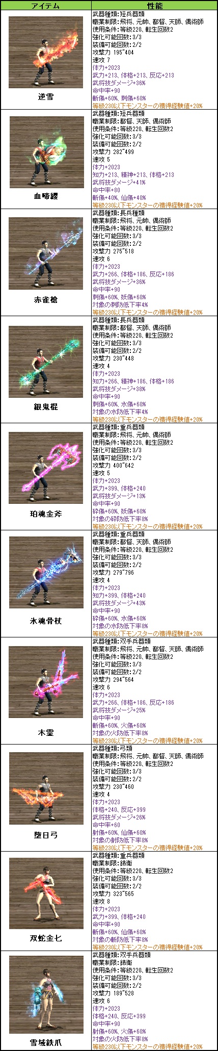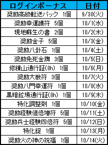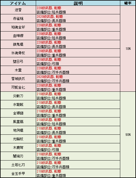 ※ 上表の確率はアイテム個々の確率ではなく合計の確率となっております。