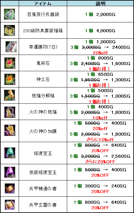 火の神の加護のセールに併せて、装備精錬成功確率UPイベントを開催いたします。