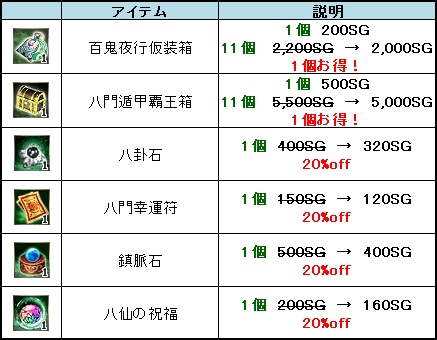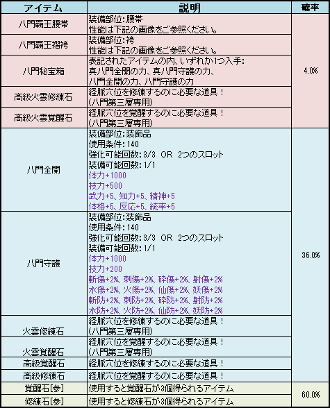 期間限定で八門装飾品や強化素材のドロップが追加されます。