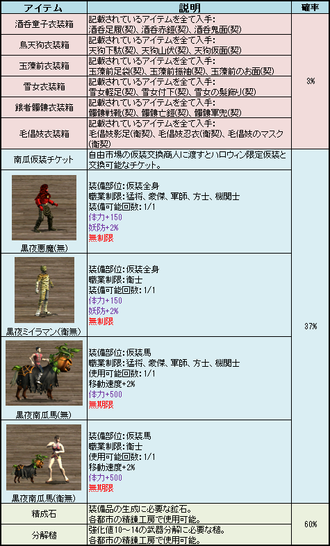 ハロウィン限定宝箱、南瓜伯爵の珠、精成石、