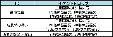 精成石、三世因縁の箱、170級~210級武器福袋や175級~200級防具福箱