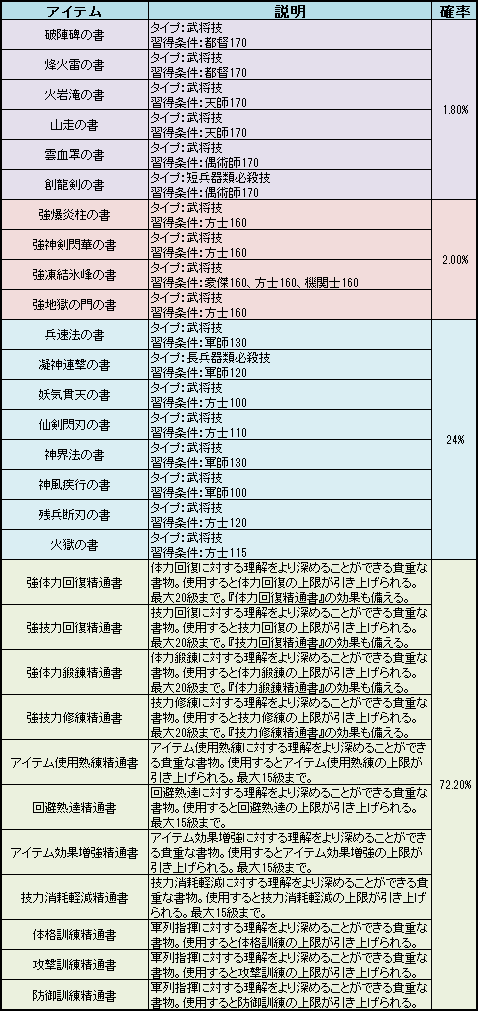 ※ 西域奇技書卷を開封すると、確率でいずれか1つの西域技能符や書を獲得します。