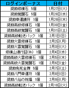 ※ 7日以上の追加特典は2月10日(火)定期メンテナンスにて配布する予定です。