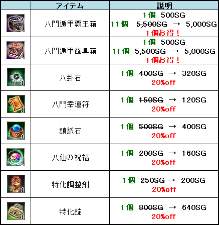 期間限定で八門装飾品や強化素材のドロップが追加されます。