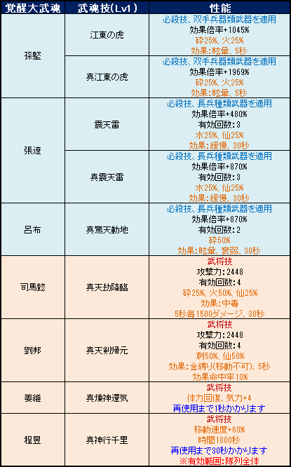 ▽ 新規覚醒武魂一覧: