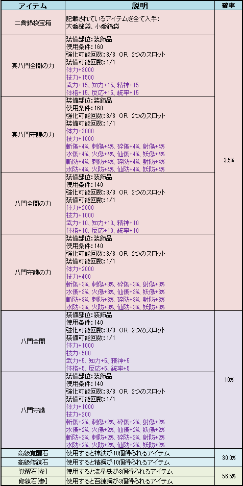 反董連合軍宝箱:八門全開、八門守護、奨励修練石、奨励覚醒石