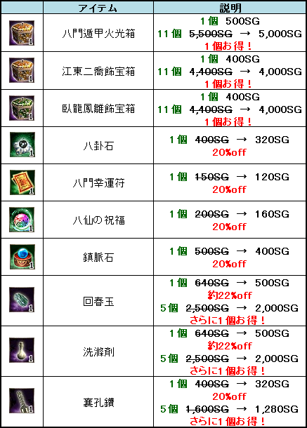「群英伝金印★」1個を無期限の「送子鳥(無)」