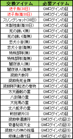 様々な報酬と交換可能な「GWログインの証」を受け取ることができます。