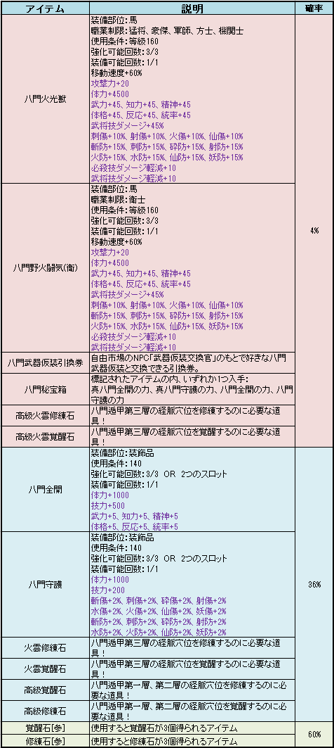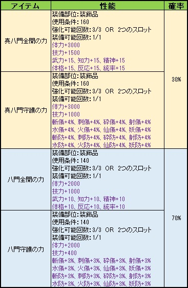 期間限定で八門装飾品や強化素材のドロップが追加されます。