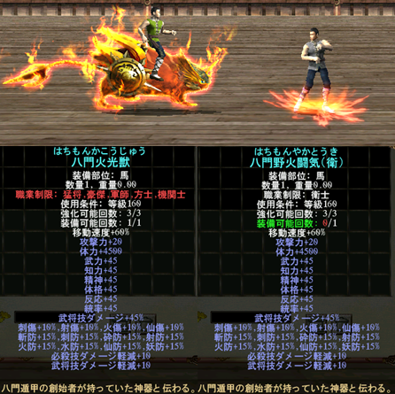 ▼八門火光獣、八門野火闘気(衛)の性能: