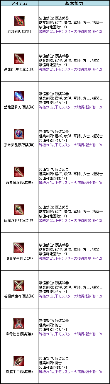 ※ 赤文字表記のアイテムは、今回新たに実装されたものです。