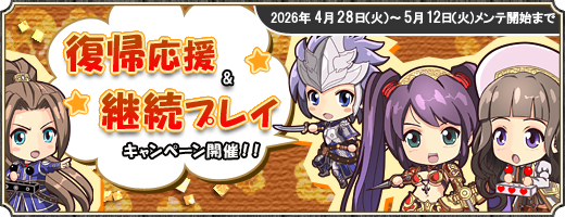 復帰応援&継続プレイキャンペーンを実施いたします。